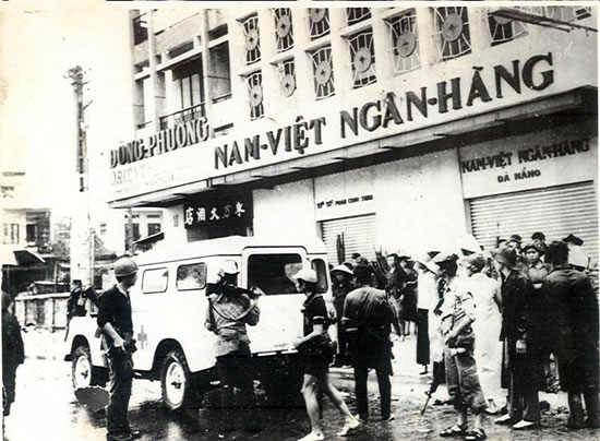 | Với việc 500 nghìn lính Mỹ tiêu xài thả cửa với những đồng đô-la đỏ, nền kinh tế của chính quyền Sài Gòn đã bị ảnh hưởng nghiêm trọng. Trong ảnh: Quân giải phóng tiếp quản ngân hàng khi tiến vào giải phóng Đà Nẵng ngày 29-3-1975. |