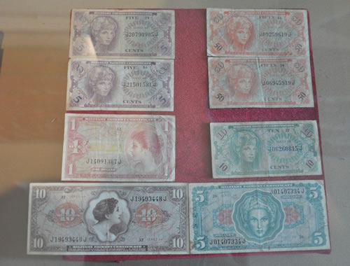 | Những đồng đô-la đỏ mà Mỹ lưu hành khi tham chiến ở miền Nam Việt Nam, được lưu giữ ở Bảo tàng Đà Nẵng. |