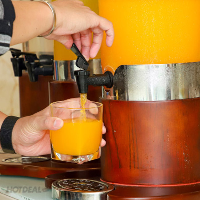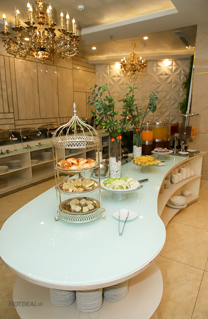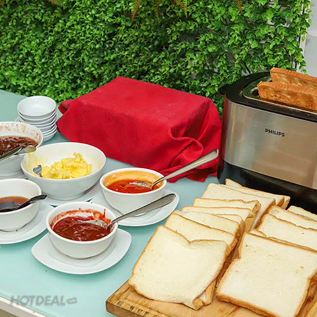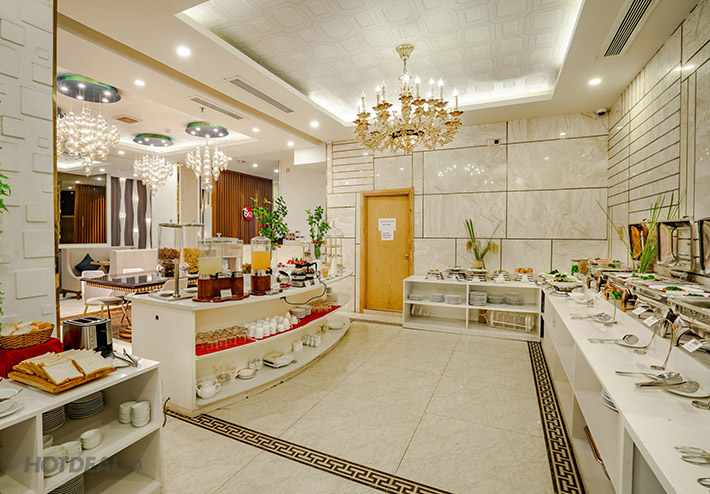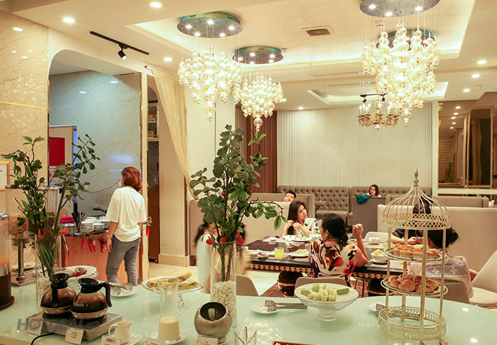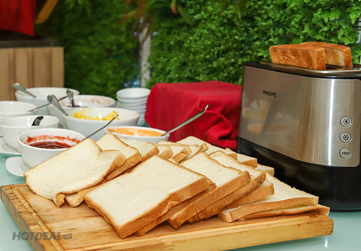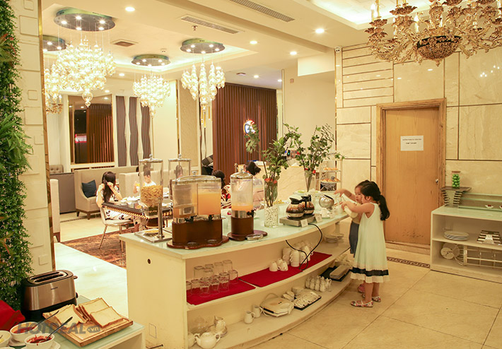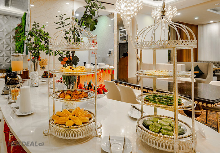 - Buffet sáng với hơn 20 món ngon ba miền, được phục vụ trong không gian sang trọng, ấm cúng là một lựa chọn tuyệt vời để bạn khởi đầu ngày mới theo cách hoàn hảo nhất.