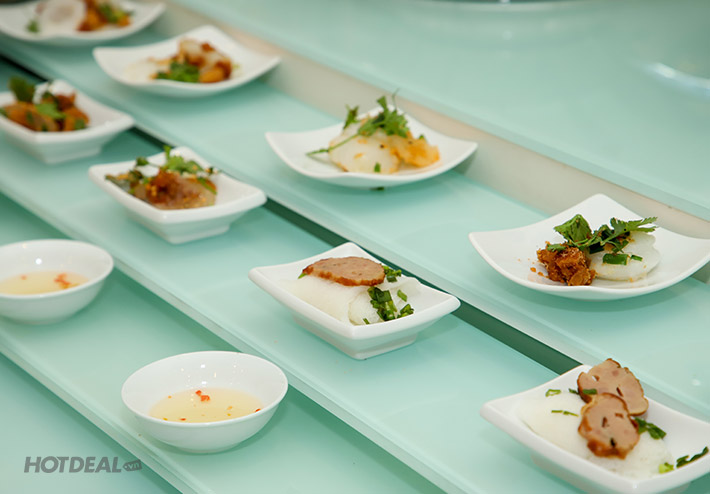 Thực đơn buffet sáng tại nhà hàng Sky Garden đa dạng và phong phú có thể thỏa mãn khẩu vị của nhiều đối tượng thực khách. Nếu bạn là một người yêu thích ẩm thực truyền thống thì đã có bánh ướt, bánh hỏi-heo quay, bánh bèo, bánh bột lọc... Hay bạn là người yêu thích những ăn nóng đã có cháo trắng – hột vịt muối - chà bông, súp hải sản, soup rong biển, soup ngọc bích. Tất cả đều được chế biến từ những nguyên liệu tươi ngon, hảo hạng nhất.