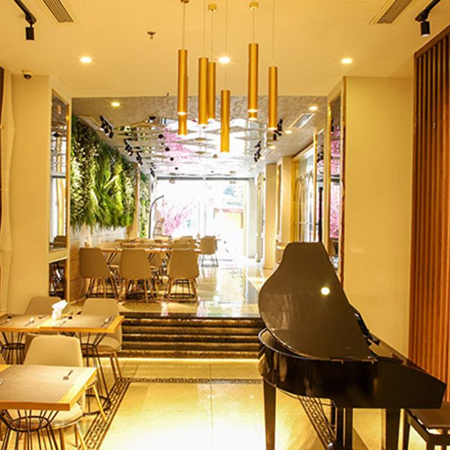 - Nhà hàng Sky Gardennằm tại tầng trệt của khách sạn, phục vụ đầy đủ các món ăn Việt, Á, Âu, đáp ứng tối đa nhu cầu ẩm thực đa dạng của khách hàng.