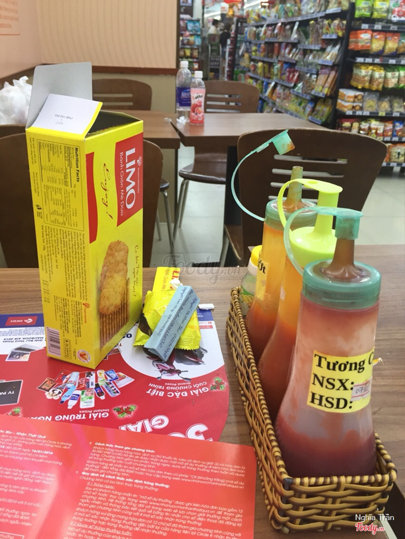 Jessica Chen đã bình luận bằng iPhone 20/06/2016 00:01:26, 8.0 Circle K Không gian: rộng rãi, nhiều bàn, trên bàn có sẵn tương ớt và tương cà, có cả nhà vệ sinh. Nhân viên: nhiệt tình, thân thiện. ...Xem thêm