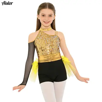Kids Girls Jazz Ballet Dance Jumpsuit Asymmetrical Long Sleeve Sparkly Sequins Bodice Tulle Skirted Leotard Ballroom Performance 197,685 ₫ 329,475 ₫ -40% (5.0)