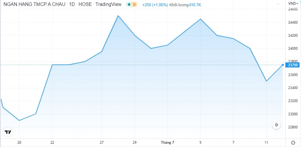 Trên thị trường chứng khoán, tại phiên giao dịch chiều ngày 12/7, cổ phiếu ACB tăng 1,06% lên mức 23.700đ/cp. Khối lượng giao dịch trung bình 10 phiên gần nhất đạt hơn 2,1 triệu đơn vị.