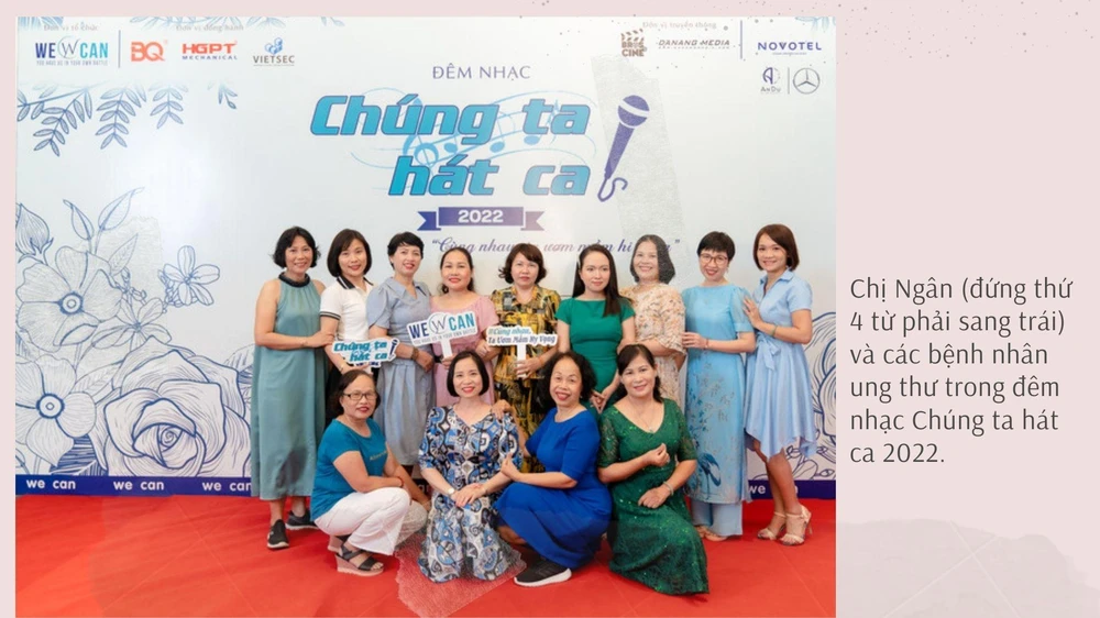 “Dù sao ngày đó vẫn chưa tới, vì đâu mình cứ phải ủ rũ thế này? Mình tự hỏi và quyết định thay đổi, bắt đầu suy nghĩ về những việc có thể làm, lăn lộn, tìm tòi thông tin về bệnh ung thư. Trong quá trình đó, ý định thành lập tổ chức hỗ trợ, đồng hành cùng bệnh nhân ung thư ra đời, cũng là lúc cuộc đời mình bước sang một trang hoàn toàn khác”- chị Ngân cho hay.