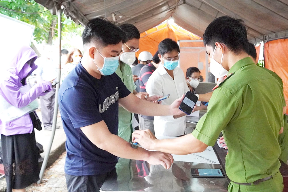 Người dân đến Bà Rịa - Vũng Tàu khai báo y tế tại chốt kiểm soát phòng chống dịch trên quốc lộ 51. Ảnh: KL