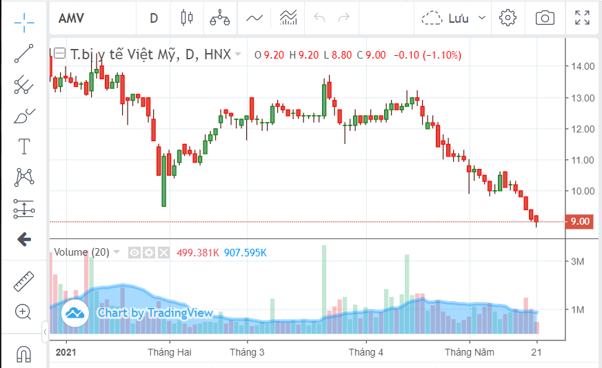 Hơn 1 tháng trở lại đây, những người kiên nhẫn nhất với cổ phiếu AMV của CTCP Sản xuất Kinh doanh Dược và Trang thiết bị Y tế Việt Mỹ (HNX: AMV) đã lần lượt rời đi khi thị giá của mã liên tục bay hơi qua các phiên và đang có nguy cơ thủng đáy tháng 7/2020.
