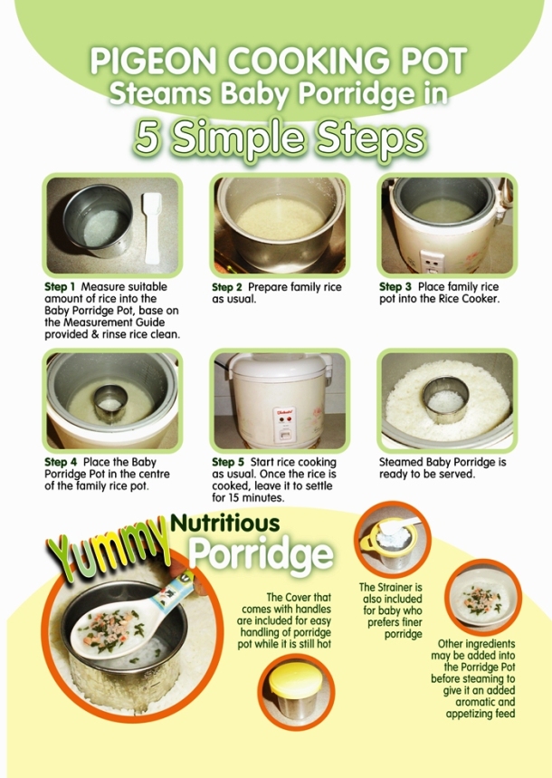 Dùng cốc nấu cháo Pigeon đặt vào nồi cơm điện sẽ giúp mẹ tiết kiệm thời gian nấu riêng cho bé, đồng thời cốc nhỏ gọn nên thức ăn sẽ không dính vào cốc như các mẹ nấu bằng nồi riêng cho bé.