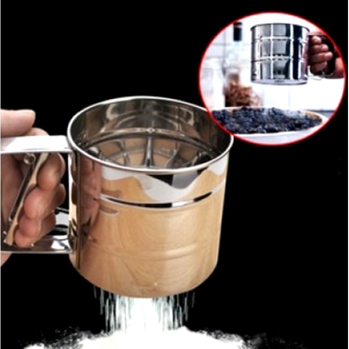 THÔNG TIN SẢN PHẨM Tên Sản Phẩm : Cốc Rây Bột Inox Kích Thước : 10 x 9.5 Cm Màu Sắc: Bạc Trọng Lượng : 100gr Đặc điểm nổi bật - Dụng cụ rây, giúp rây mịn bột, bột cacao và mọi nguyên liệu khô khác trong làm bánh chỉ với một thao tác đơn giản và dễ dàng. Nhanh, gọn và tránh dây rớt. Thiết kế hiện đại và lịch lãm. - Dụng cụ rây bột với thiết kế cốc đựng cầm tay, thích hợp rây mịn bột khi làm bánh. Chỉ với một thao tác, bột sẽ được rây trực tiếp. Lưới sàng bột giúp bột được rây mịn, tránh vón cục. - Có tay bóp tiện lợi giúp thao tác dễ dàng hơn.