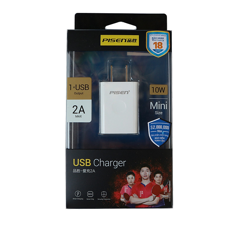 Cốc sạc Pisen USB Charger 2A – Sạc nhanh 10W – Hàng chính hãng