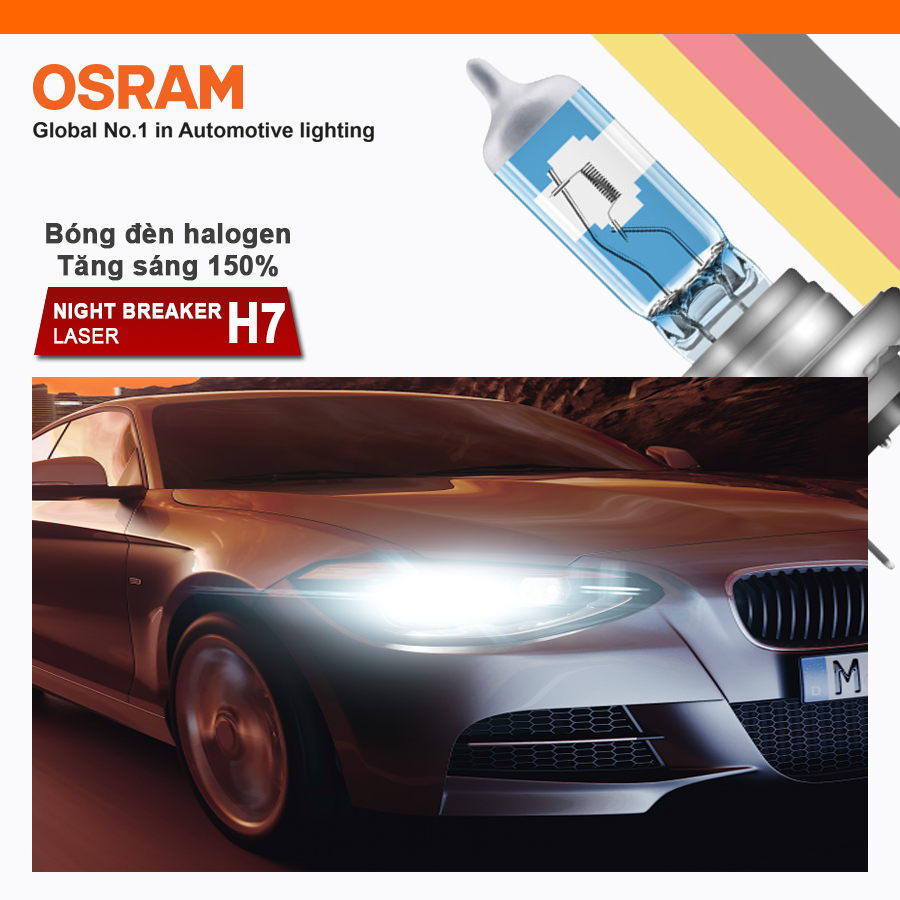 - Bóng đèn halogen tăng sáng 150% OSRAM NIGHT BREAKER LASER H7 12v 55w được chế tạo bằng thủy tinh cao cấp giúp hỗ trợ chiếu sáng hiệu quả trên những chặng đường dài.