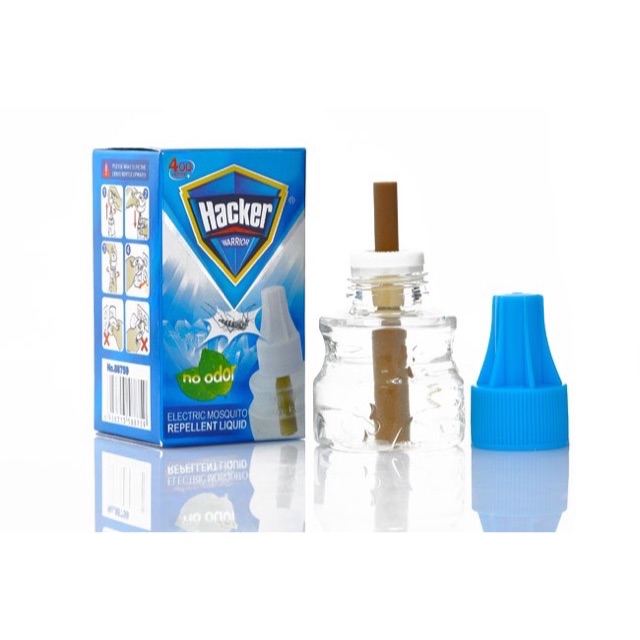 Lọ tinh dầu đuổi muỗi Hacker được triết xuất từ thiên nhiên ( chủ yếu là từ cây Sả) có tác dụng đuổi côn trùng bằng cơ chế sử dụng công nghệ bốc hơi tinh dầu dưới dạng ion gây ức chế phổi của côn trùng, làm cho côn trùng khó chịu và b đi.