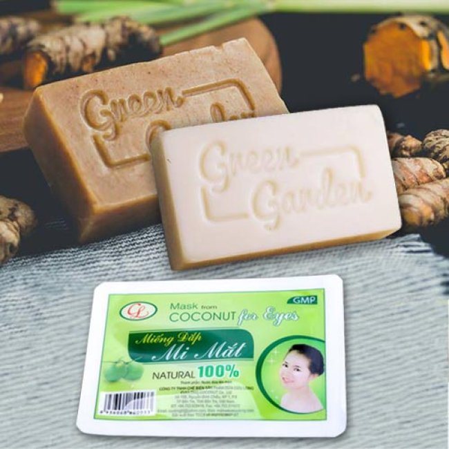 - Tên sản phẩm: Combo 2 viên xà phòng dầu dừa thiên nhiên – Thương hiệu Green Garden (Tặng 1 cặp mặt nạ mí mắt)