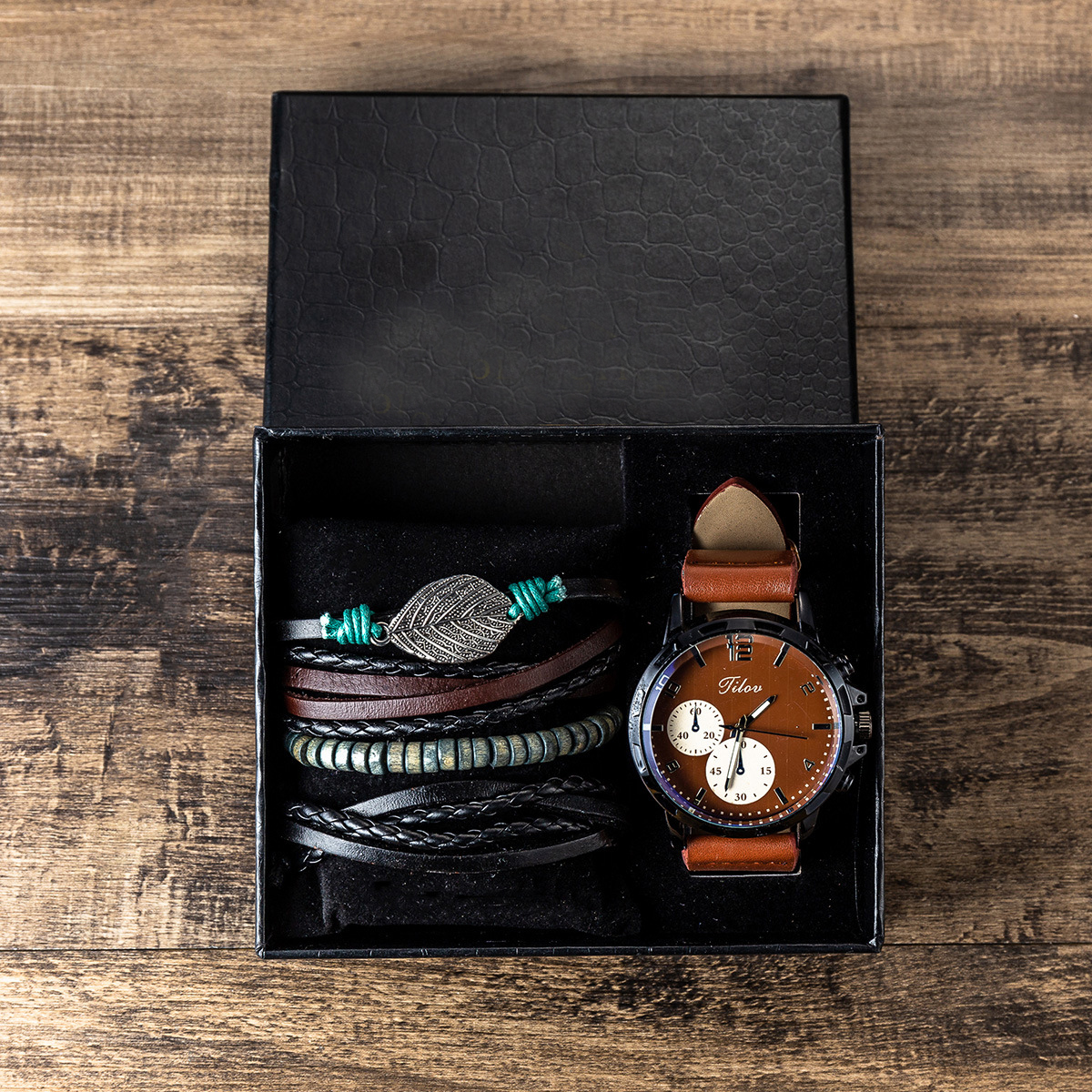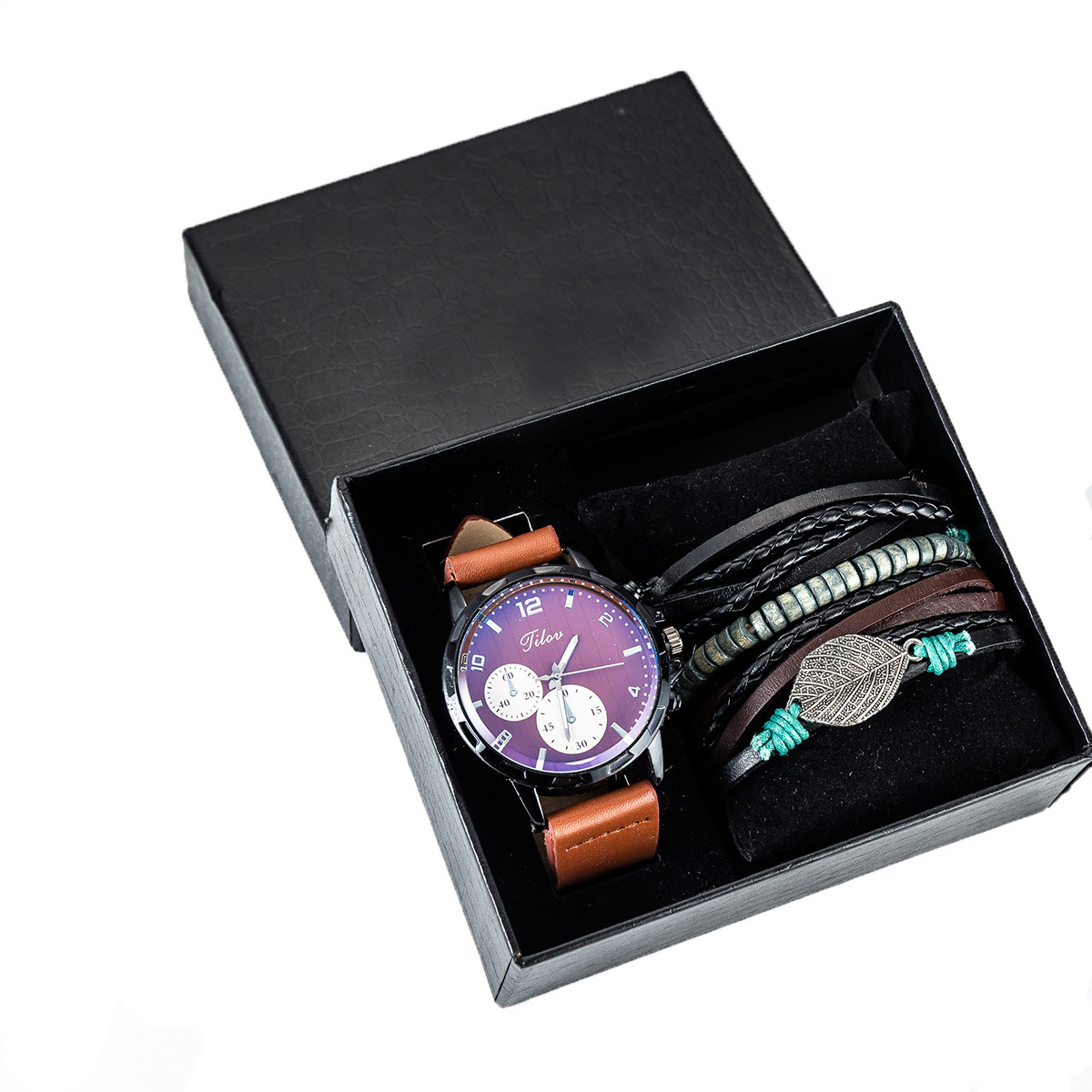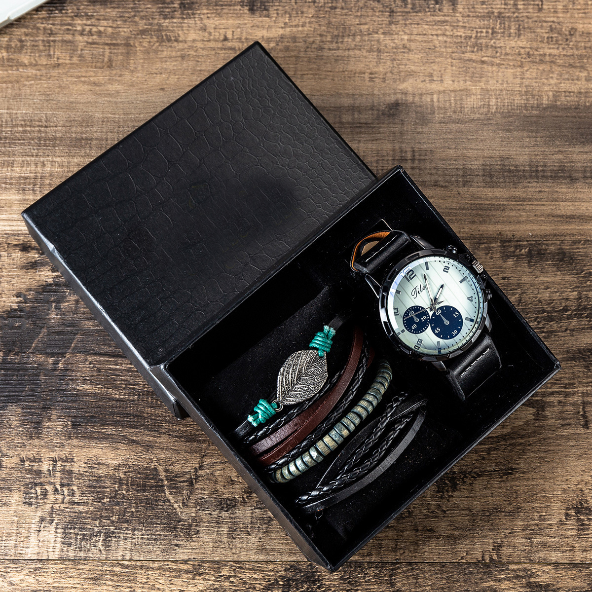 Combo 4 món đồ L gồm Đồng Hồ + Vòng Tay Da + Vòng Tay Ngọc + Vòng Tay Gỗ