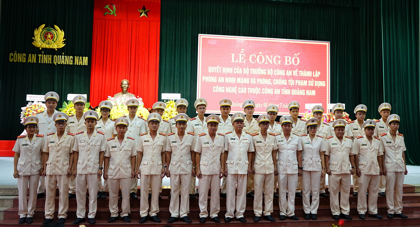Sáng nay (5-7), Công an tỉnh Quảng Nam long trọng tổ chức Lễ công bố Quyết định của Bộ trưởng Bộ Công an về thành lập Phòng An ninh mạng và phòng, chống tội phạm sử dụng công nghệ cao (PA05) thuộc Công an tỉnh Quảng Nam. Tham dự buổi lễ có đại diện lãnh đạo tỉnh Quảng Nam, Thượng tá Nguyễn Thành Lợi – Trưởng Phòng Chính trị - hậu cần (Cục A05 - Bộ Công an).