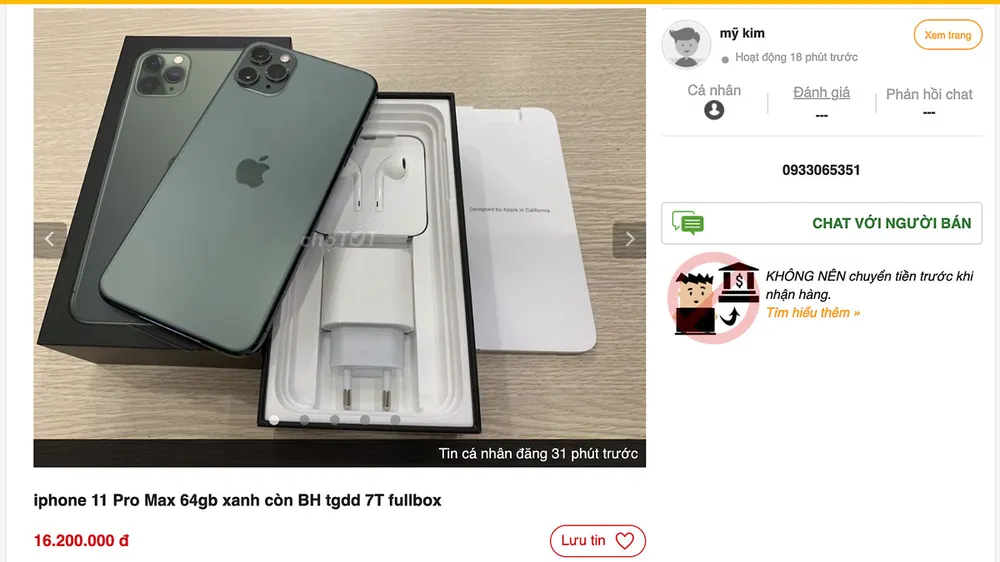 Tài khoản tên Mỹ Kim, số điện thoại 0933.065.351 tiếp tục đăng bán điện thoại giống tài khoản Linh. Ảnh: N.YÊN