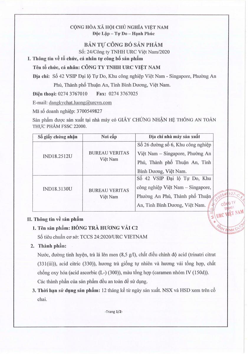 Công bố sản phẩm Công Bố Sản Phẩm Mới Hồng Trà Hương Vải C2 Công Bố Sản Phẩm Mới Hồng Trà Hương Vải C2