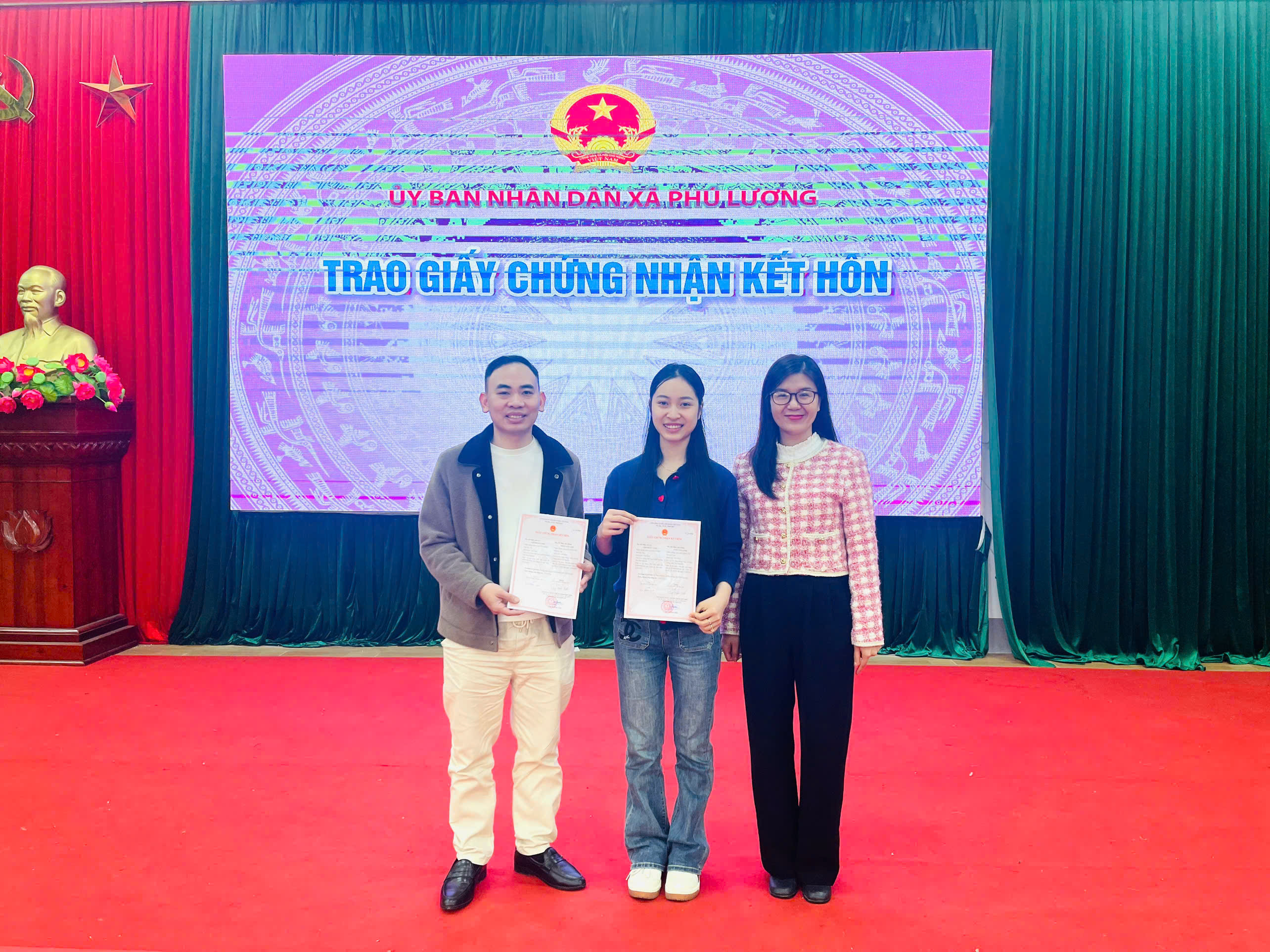 Đồng chí Phó Chủ tịch UBND xã Phú Lương trao Giấy chứng nhận kết hôn cho công dân Thứ bảy, 14/02/2026 -