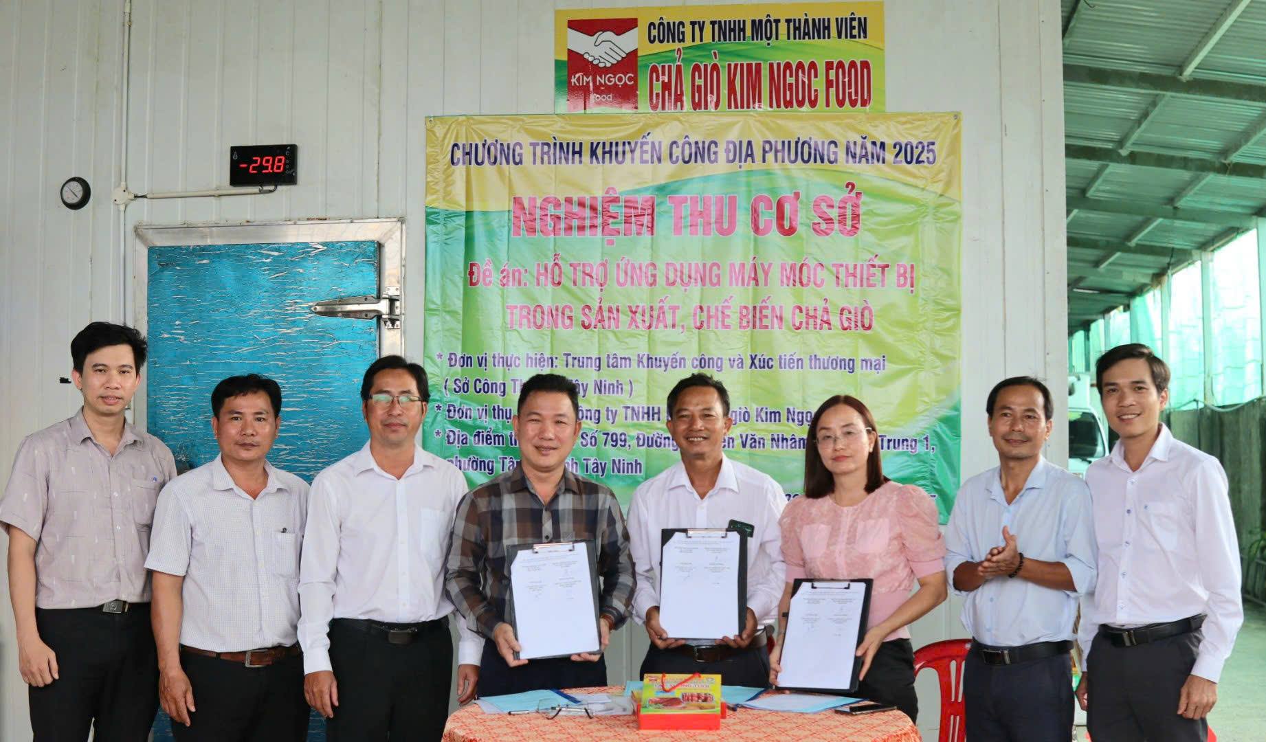 Ứng dụng máy móc hiện đại, Kim Ngọc Food nâng cao chất lượng sản phẩm chả giò Thực hiện chương trình khuyến công địa phương năm 2025, chiều ngày 28/12, Trung tâm Khuyến công và Xúc tiến thương mại tỉnh Tây Ninh tổ chức nghiệm thu đề án “Hỗ trợ ứng dụng máy móc thiết bị trong sản xuất, chế biến chả giò” tại Công ty TNHH MTV chả giò Kim Ngọc Food, phường Tân An. -