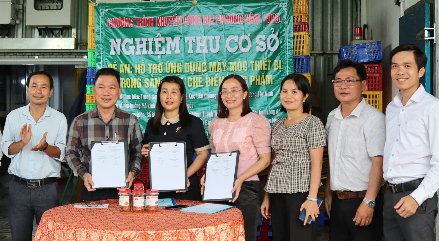 Đổi mới công nghệ từ nền tảng truyền thống, Cơ sở Ba Buôi nâng cao giá trị sản phẩm địa phương Trong quá trình triển khai chương trình khuyến công địa phương, tỉnh Tây Ninh luôn chú trọng hỗ trợ các cơ sở sản xuất thực phẩm truyền thống từng bước đổi mới công nghệ, nâng cao chất lượng và giá trị sản phẩm. Chiều ngày 28/12/2025, Trung tâm Khuyến công và Xúc tiến thương mại tỉnh tổ chức nghiệm thu đề án “Hỗ trợ ứng dụng máy móc, thiết bị trong sản xuất, chế biến thực phẩm” tại Cơ sở Ba Buôi, phường Tân An, đây là một trong những hoạt động cụ thể, thể hiện hiệu quả của chủ trương đồng hành cùng cơ sở sản xuất trên địa bàn. -
