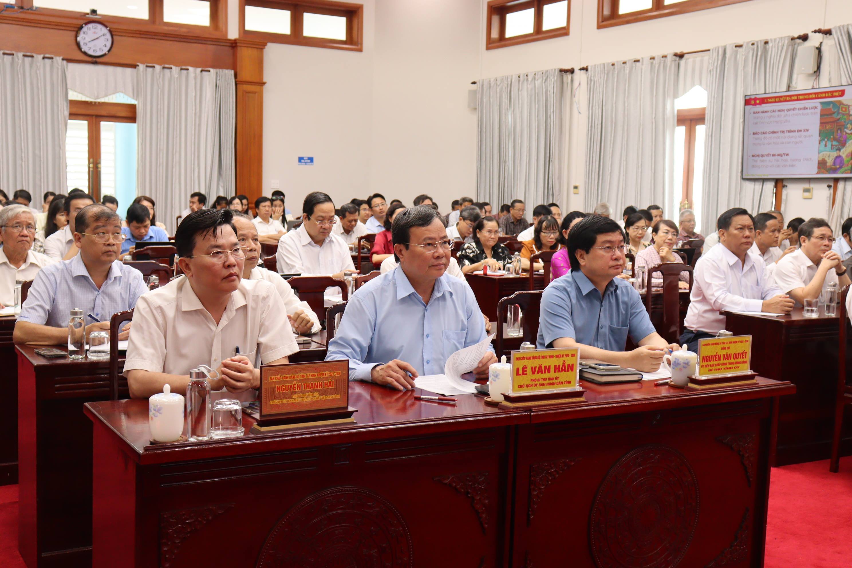 | Đại hội Đảng bộ các cấp Hội nghị quán triệt, triển khai Nghị quyết Đại hội lần thứ XIV của Đảng Sáng ngày 07/2, tại Hà Nội, Bộ Chính trị, Ban Bí thư Trung ương Đảng tổ chức Hội nghị toàn quốc nghiên cứu, học tập, quán triệt và triển khai thực hiện Nghị quyết Đại hội XIV của Đảng. Tổng Bí Thư Tô Lâm dự, chỉ đạo hội nghị. Hội nghị được tổ chức trực tiếp từ Nhà Quốc hội và kết hợp trực tuyến tới hơn 31.000 điểm cầu, với hơn 1,9 triệu đại biểu tham dự. Trong đó, tỉnh Tây Ninh có 260 điểm cầu với gần 63 ngàn đại biểu tham dự. - Tóm tắt tiểu sử đồng chí Tô Lâm, Tổng Bí thư Ban chấp hành Trung ương Đảng Cộng sản Việt Nam khóa XIV
