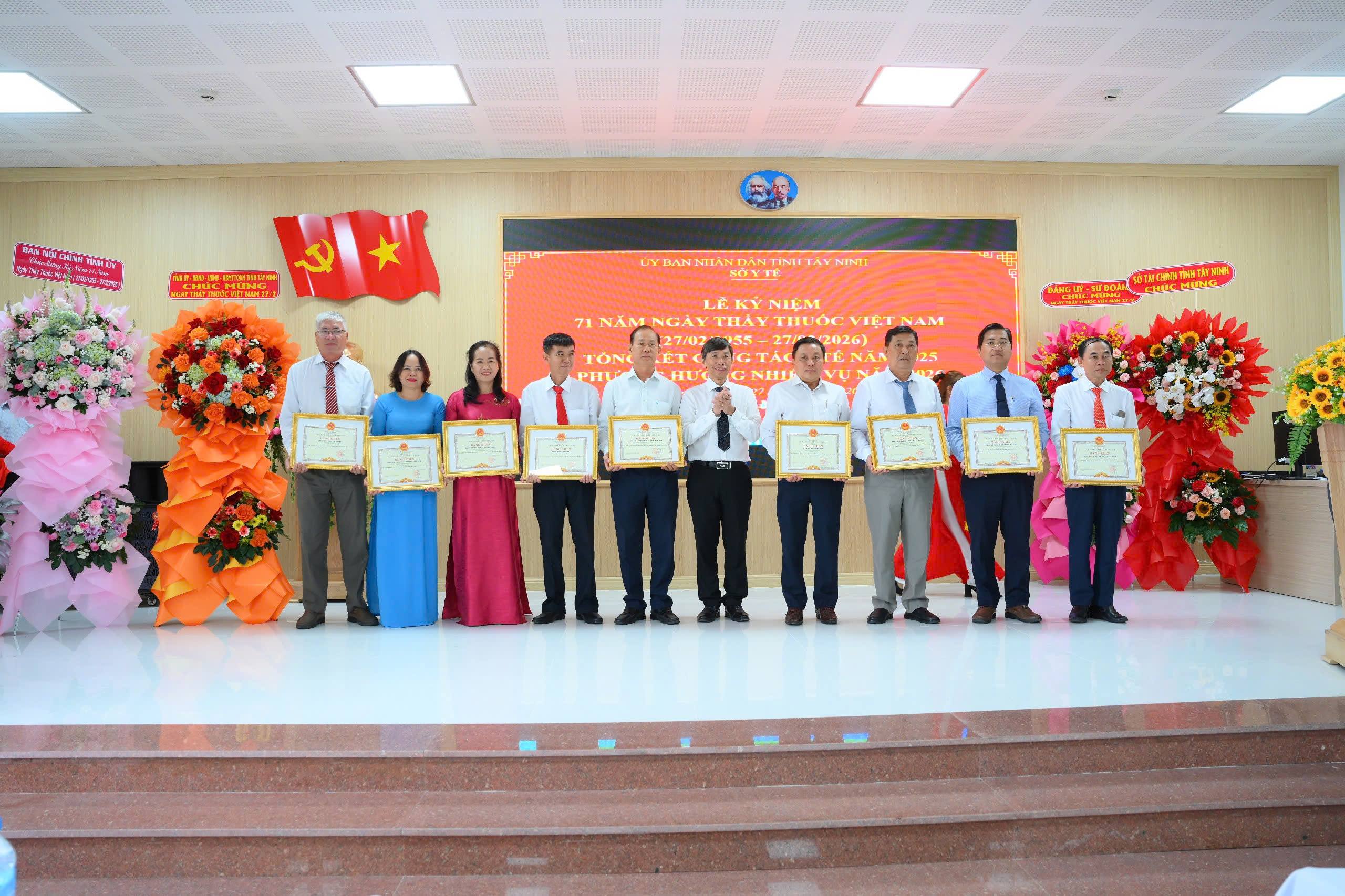 Ngành Y tế kỷ niệm 71 năm Ngày Thầy thuốc Việt Nam Chiều 27/2, Sở Y tế long trọng tổ chức Lễ kỷ niệm 71 năm Ngày Thầy thuốc Việt Nam gắn với tổng kết công tác y tế năm 2025 và triển khai phương hướng, nhiệm vụ năm 2026. Tham dự buổi lễ có lãnh đạo tỉnh, đại diện các sở, ban, ngành cùng đông đảo cán bộ, y bác sĩ, nhân viên y tế qua các thời kỳ. -