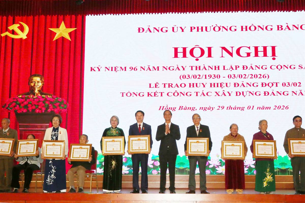 Đảng ủy phường Hồng Bàng trao tặng Huy hiệu Đảng đợt 3/2/2026 và tổng kết công tác xây dựng Đảng năm 2025