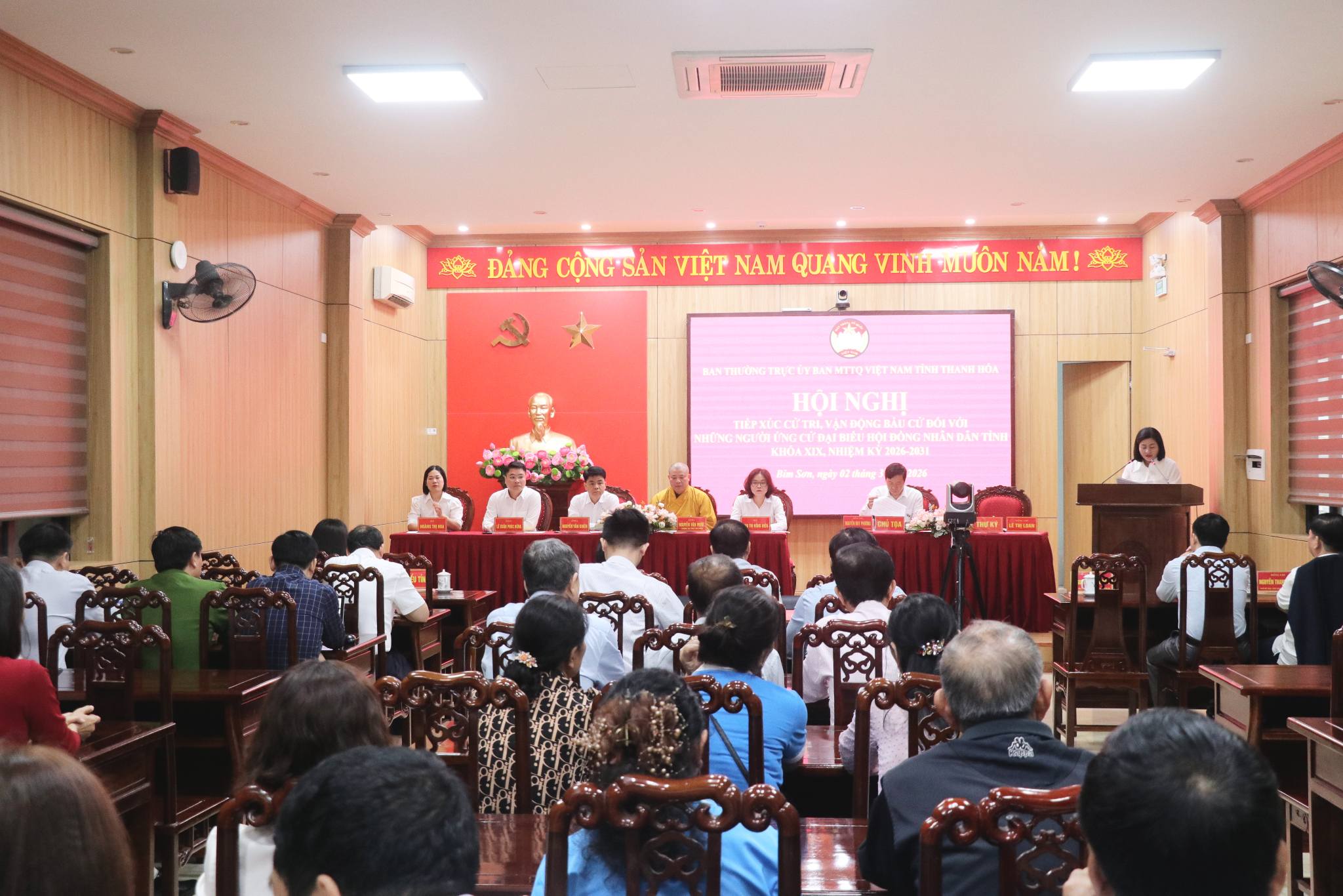 Ứng cử viên đại biểu HĐND tỉnh tiếp xúc cử tri, vận động bầu cử tại phường Bỉm Sơn Sáng ngày 2/3, tại trụ sở Đảng uỷ phường Bỉm Sơn, Uỷ ban MTTQ phường Bỉm Sơn tổ chức hội nghị tiếp xúc cử tri với người ứng cử đại biểu HĐND tỉnh khoá XIX nhiệm kỳ 2026 – 2031, thuộc đơn vị bầu cử sổ 23. Hội nghị được kết nối đến các điểm cầu Nhà văn hoá các TDP Đoài Thôn và Quý Vinh. - Hội LHPN tỉnh Thanh Hóa tổ chức Lễ phát động hưởng ứng “Tết trồng cây đời đời nhớ ơn Bác Hồ”