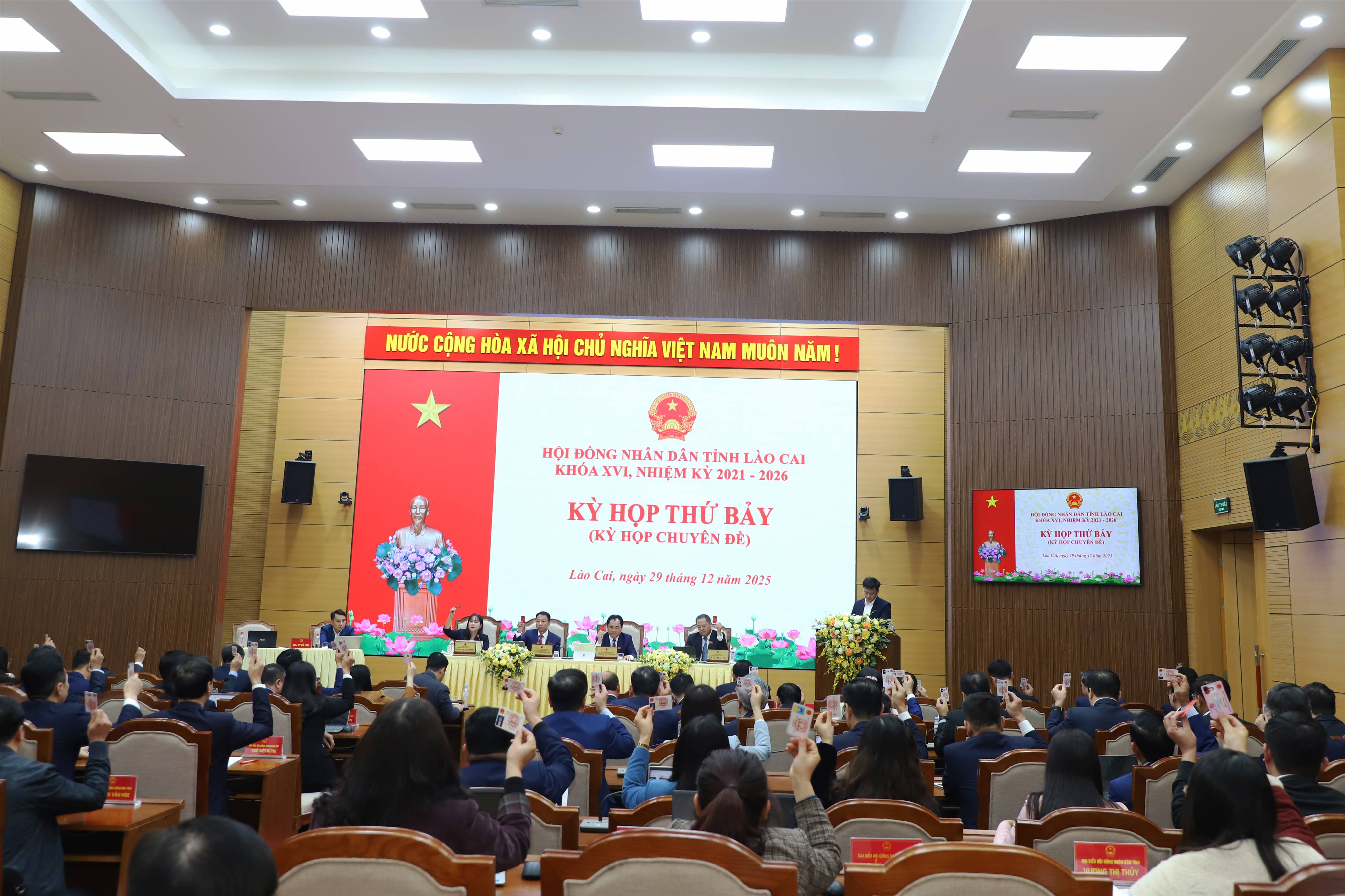 Kỳ họp thứ 7, HĐND tỉnh thông qua 13 nghị quyết quan trọng về điều chỉnh, bổ sung một số chủ... CTTĐT - Chiều ngày 29/12/2025, Hội đồng nhân dân tỉnh Lào Cai tổ chức Kỳ họp thứ bảy,... -
