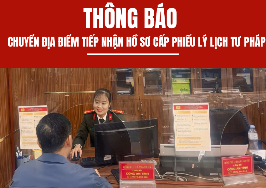 Thông báo: Chuyển địa điểm tiếp nhận hồ sơ cấp phiếu lý lịch tư pháp CTTĐT - Thực hiện Công văn số 3539/CAT-PV01 ngày 19/12/2025 của Công an tỉnh Lào Cai về việc kết thúc hoạt động của lực lượng Công an tại Trung tâm... -