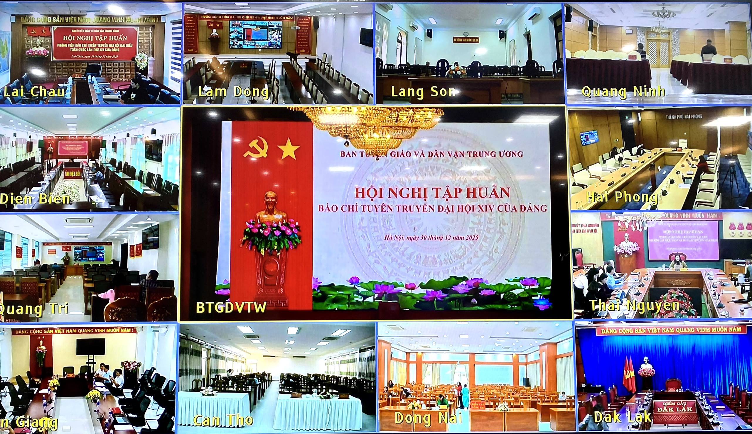 Lào Cai tham dự Hội nghị tập huấn báo chí tuyên truyền Đại hội đại biểu toàn quốc lần thứ XIV của... CTTĐT - Chiều 30/12, Ban Tuyên giáo và Dân vận Trung ương tổ chức Hội nghị tập huấn cho cán bộ,... -