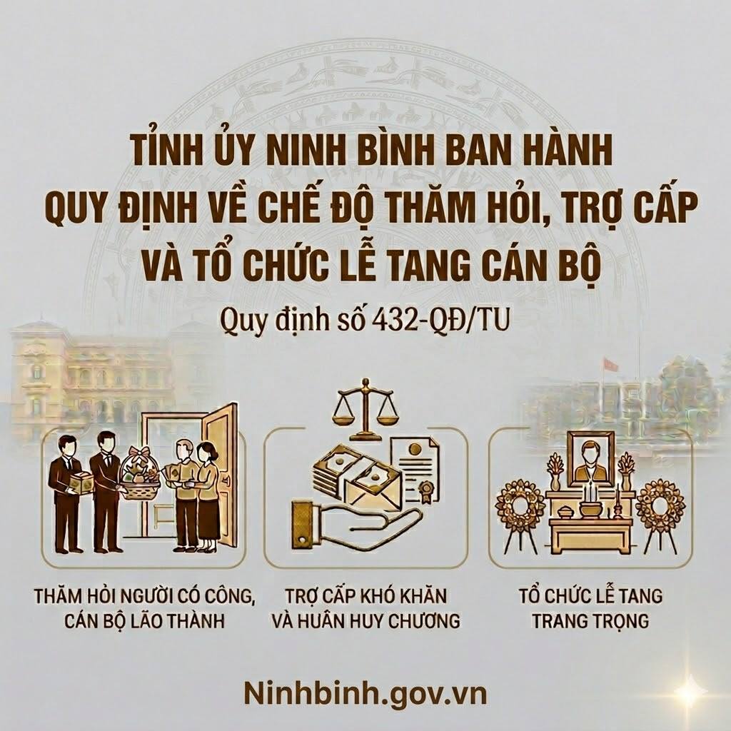 Tỉnh ủy Ninh Bình ban hành Quy định về chế độ thăm hỏi, trợ cấp và tổ chức lễ tang cán bộ -