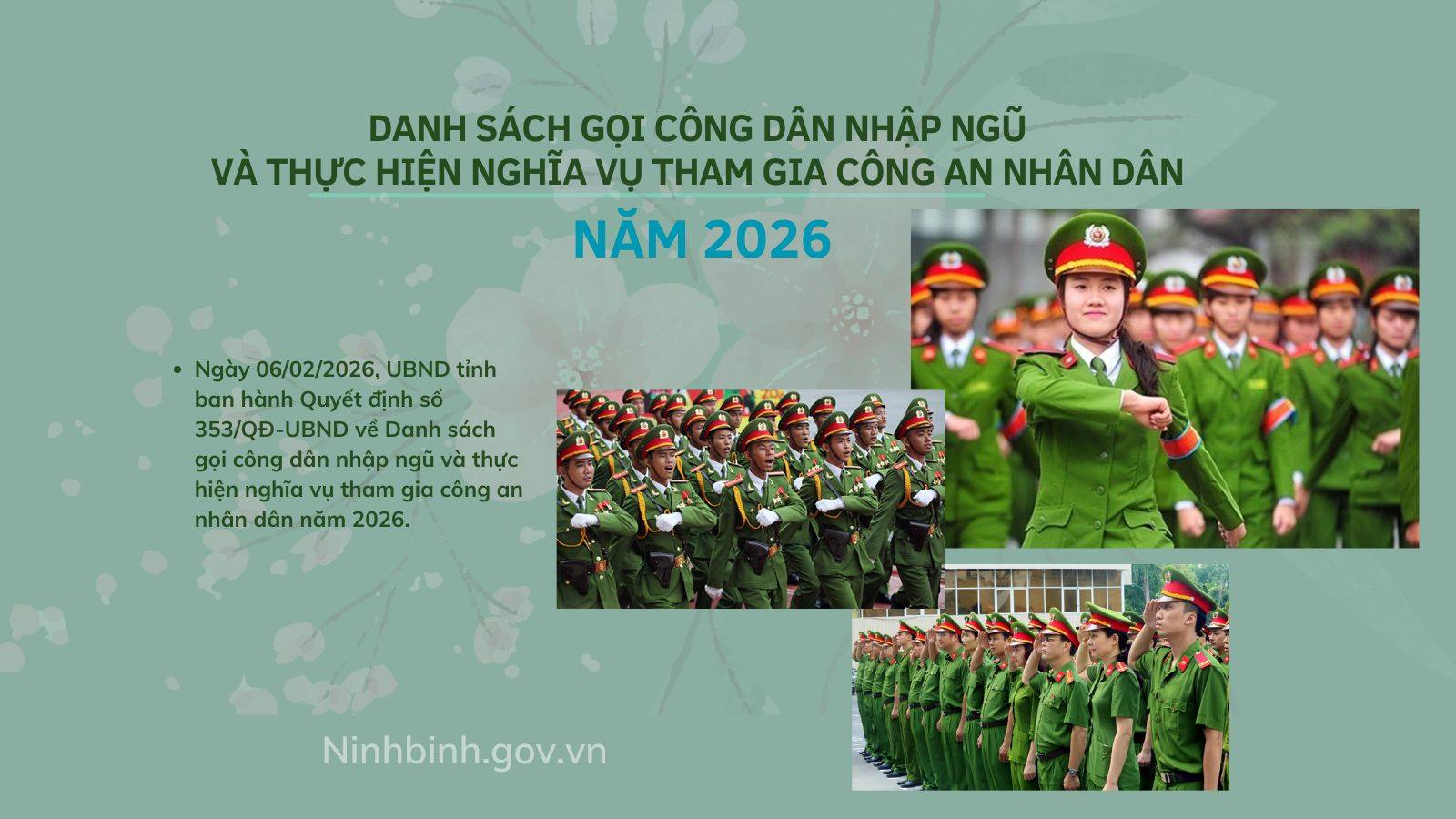 - 09:03 Danh sách gọi công dân nhập ngũ và thực hiện nghĩa vụ tham gia công an nhân dân năm 2026