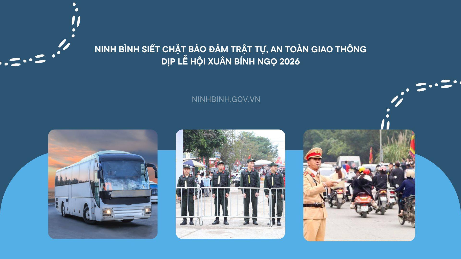 Ninh Bình siết chặt bảo đảm trật tự, an toàn giao thông dịp Lễ hội Xuân Bính Ngọ 2026 UBND tỉnh Ninh Bình ban hành Công văn số 1060/UBND-VP4 triển khai thực hiện Công điện số 16/CĐ-TTg... - 10:02 Kế hoạch kiểm tra, giám sát việc chấp hành các quy định pháp luật về công tác quản lý chất lượng...