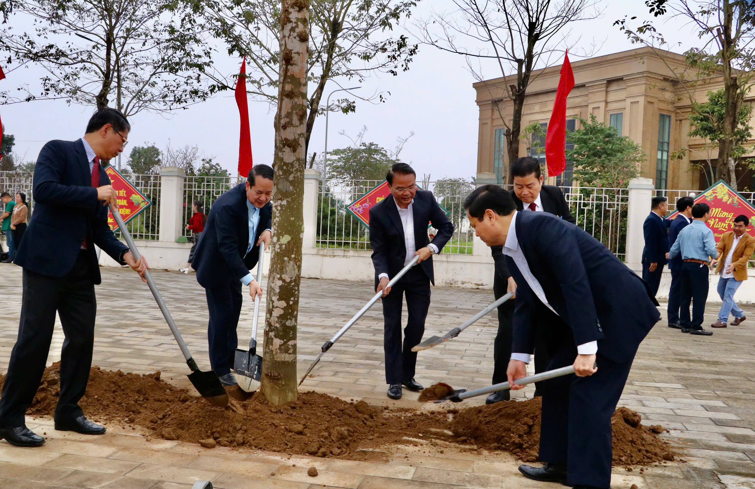 Đồng chí Đặng Xuân Phong, Ủy viên Trung ương Đảng, Bí thư Tỉnh ủy, Trưởng Đoàn ĐBQH tỉnh và các đồng chí lãnh đạo tỉnh trồng cây tại Lễ phát động “Tết trồng cây đời đời nhớ ơn Bác Hồ” -
