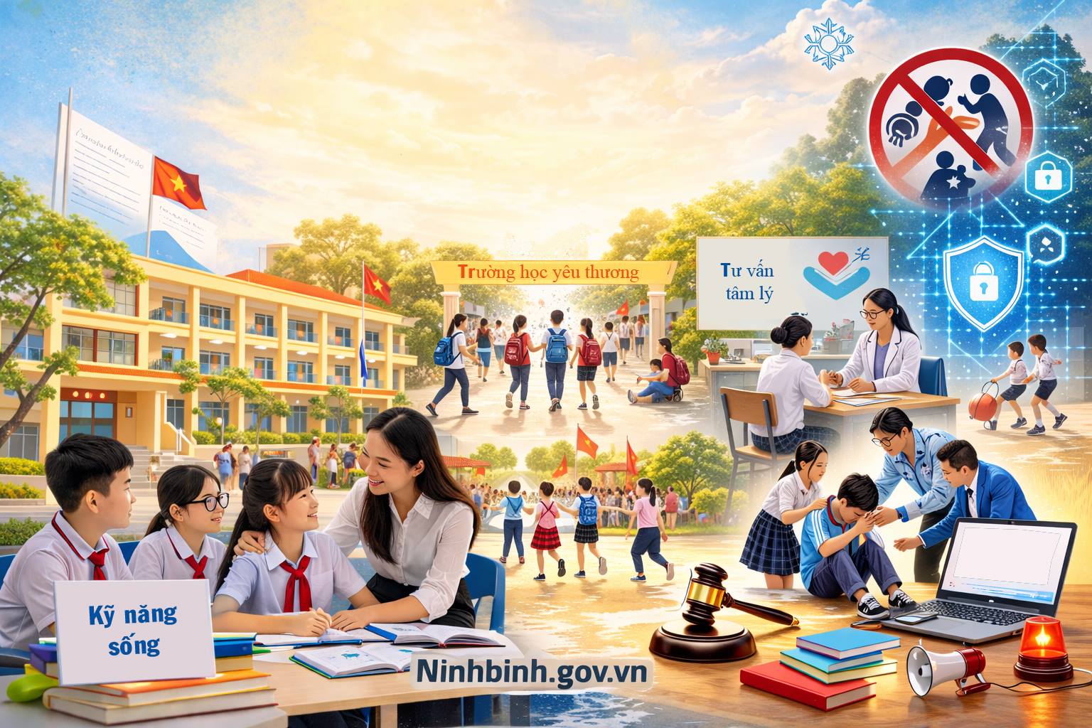 Ninh Bình: Ngăn chặn, đẩy lùi bạo lực học đường UBND tỉnh Ninh Bình vừa ban hành Kế hoạch thực hiện ngăn chặn, đẩy lùi bạo lực học đường, bảo đảm... - 09:36 Thành lập Trung tâm Điều dưỡng người có công tỉnh Ninh Bình trên cơ sở hợp nhất 04 đơn vị