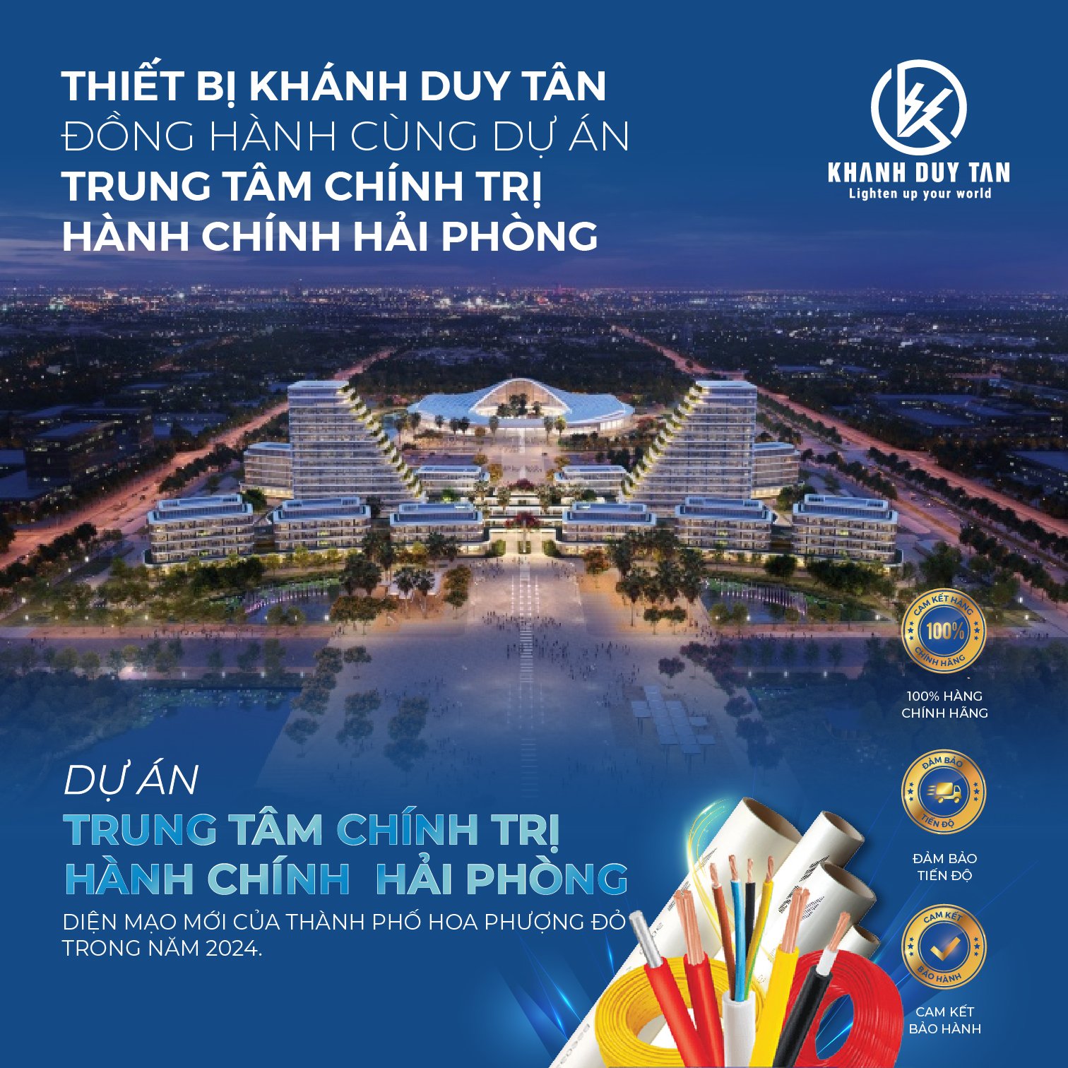 Hướng đến hình tượng thành phố Cảng quốc tế, khu đô thị phía Bắc sông Cấm sẽ là cột mốc mới của Hải Phòng - trở thành đại đô thị hiện đại, năng động và thịnh vượng bậc nhất khu vực phía Bắc. Khánh Duy Tân đóng góp một phần vào dự án với thế mạnh về các loại thiết bị điện phục vụ xây dựng.