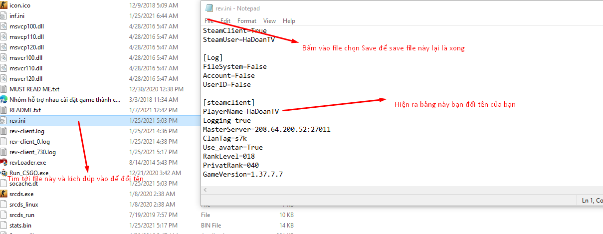 Bước 2: Tìm tới file 7lcfg_csgo.ini để đổi tên như ảnh