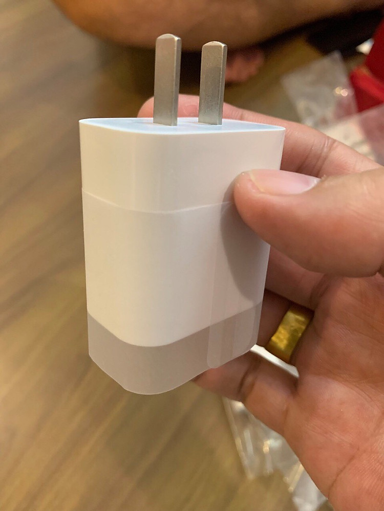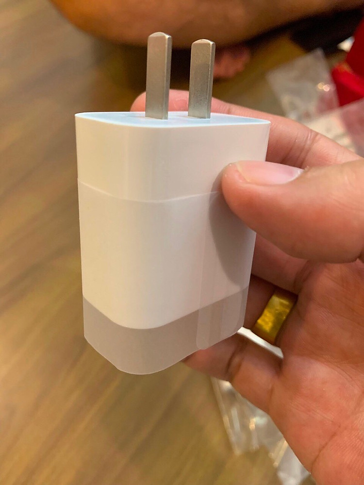 Đáng chú ý hơn, thiết kế củ sạc này có đôi chút khác biệt so với ảnh dựng bị rò rỉ hồi tháng 5 vừa qua: sản phẩm thực tế này dày hơn một chút, với kích thước lớn hơn củ sạc iPhone 5W và nhỏ hơn củ sạc iPad 10W, có thể là do nó chỉ là bản mẫu, hoặc Apple quyết định thay đổi thiết kế đôi chút trong quá trình phát triển, hoặ đây là một củ sạc fake, khi mà chúng ta không có bất kỳ bằng chứng nào xác nhận tính xác thực của nó.
