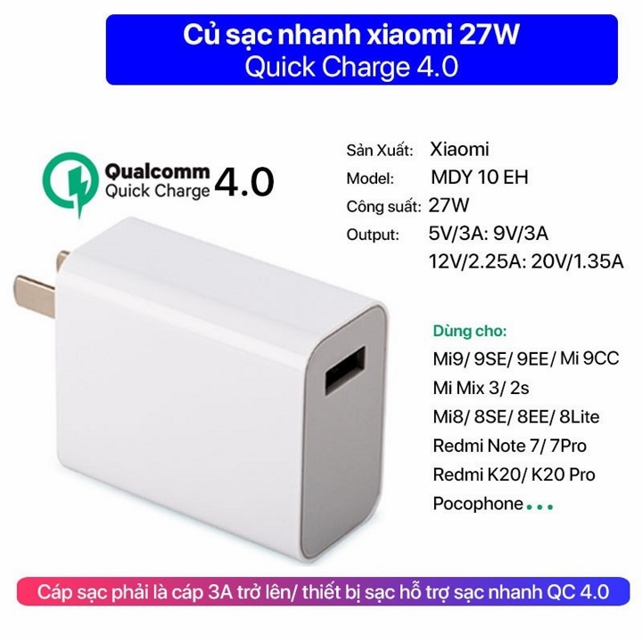 Củ sạc nhanh Xiaomi MD-10-EH Quick Charge 4.0 27W - Hàng nhập khẩu330.000Sản phẩm đã hết hàngBạn có thể xem các sản phẩm tương tự.Xem Sản Phẩm Tương TựMô tả sản phẩm