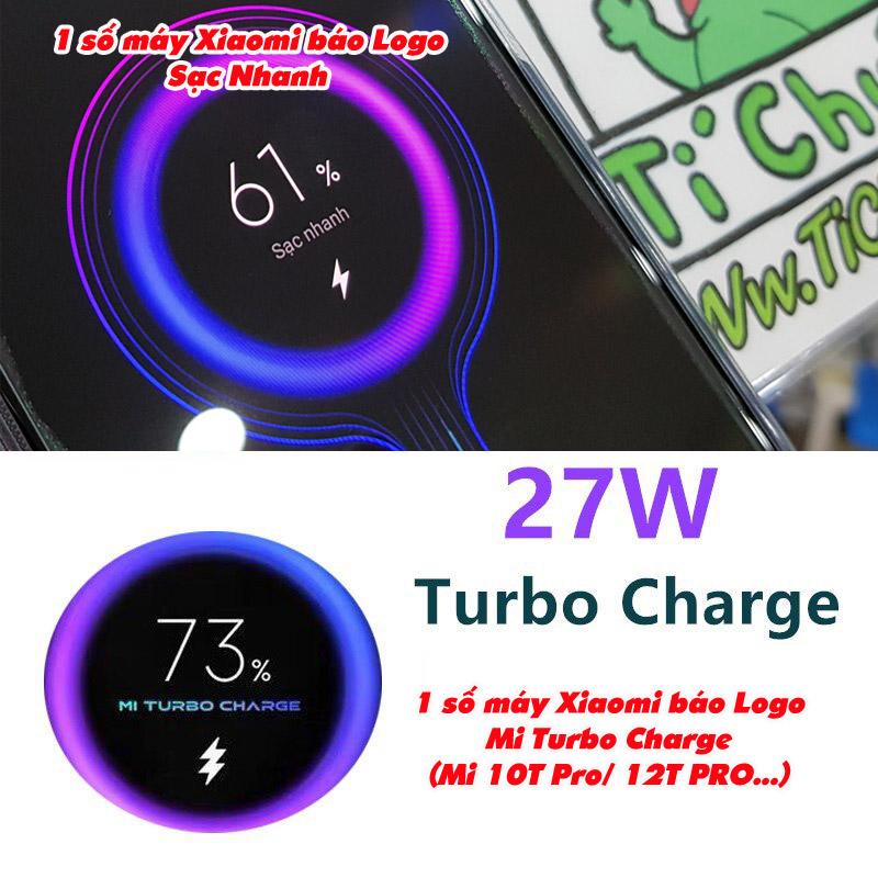 ✔️ Khi cắm vào 1 số máy Xiaomi có hiện Logo Mi Turbo Charge (đã test trên Mi 10T Pro/ 12T Pro...), 1 số máy Xiaomi khác thì hiện Logo Sạc Nhanh.