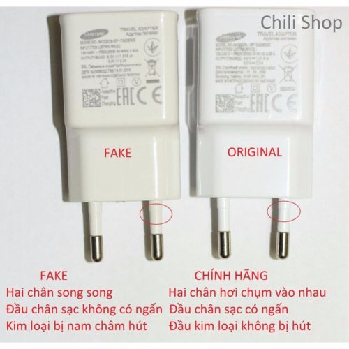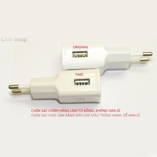 THÔNG SỐ KỸ THUẬT:- Input: 100-240V 0.35A 50-60HZ ;Output: 5V-2A.- Kết nối với điện thoại qua cáp Micro USB.- Thiết kế thông minh, nhỏ gọn.ĐẶC ĐIỂM:- Hàng chính hãng Samsung. Made in Vietnam.- Dòng điện ổn định, an toàn cho máy, nâng cao tuổi thọ pin- Không nóng sac, không lag giật điện thoại khi vừa sạc vừa sử dụng.PHÂN BIỆT SẠC 5V- 2A CHÍNH HÃNG VÀ SẠC FAKE- Chân sạc: Chân sạc Chính Hãng hơi khum lại, chân sạc Fake song song. Chân sạc Chính Hãng làm bằng hợp kim không gỉ, không hút nam châm. Chân sạc Fake han gỉ sau một thời gian sử dụng, bị nam châm hút. Chân sạc Chính Hãng có ngấn, chân sạc Fake thì không..- Chữ in trên sạc: Sạc chính hãng có chữ in sắc nét, rõ ràng, sờ vào gờ tay. Sạc Fake có nét in không sắc nét, sờ vào trơn tru, không gờ tay.- Chân cắm USB: Sạc chính hãng được làm bằng đồng, sạc Fake làm bằng kim loại màu trắng.- Mạch điện: Mạch điện của củ sạc Chính Hãng được làm chi tiết, gọn gàng, có Silicon gắn trên mạch tránh chập cháy.NGUY HẠI KHI SỬ DỤNG SẠC FAKE:- Nguy cơ cháy nổ điện thoại, củ sạc.- Giảm rõ rệt tuổi thọ pin: pin nổ, phồng.- Gây lag, giật điện thoại khi sử dụng.Vì thế các bạn hãy kiểm tra thật kỹ củ sạc để đảm bảo rằng mình mua được hàng chính hãng và đảm bảo an toàn cho thiết bị và chính mình khi sử dụng.