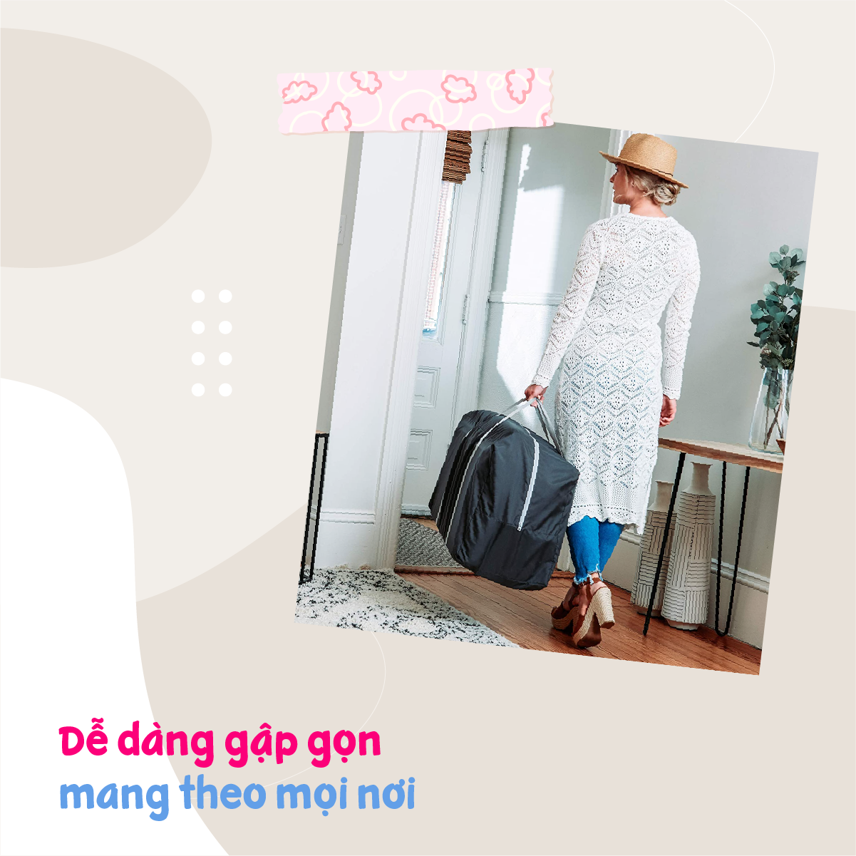 5. Cũi lưới có thể dễ dàng gập gọn và đóng thành một chiếc vali gọn nhẹ để bố mẹ có thể mang theo khi đi du lịch cùng bé.