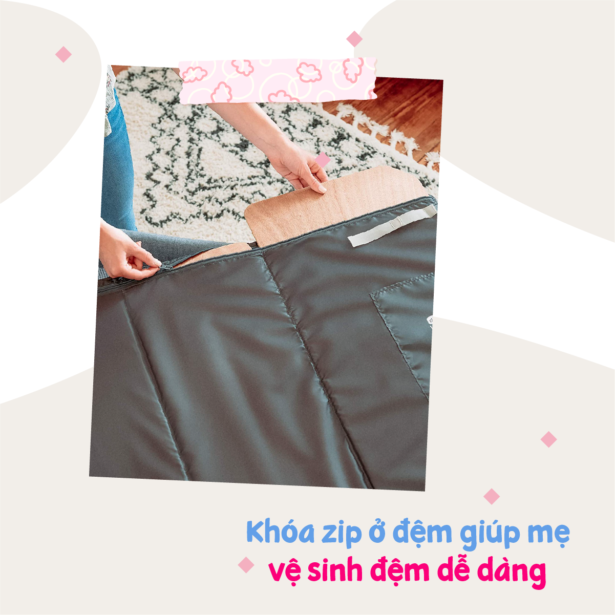 5. Đệm nằm của bé: phẳng, có khóa ZIP thuận tiện cho mẹ tháo ra vệ sinh. Vỏ bọc đệm có thể giặt máy.