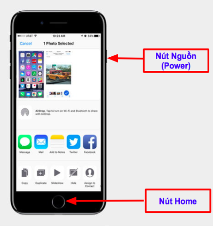 - Với điện thoại chạy hệ điều hành iOS: Đối tác chỉ cần nhấn đồng thời nút Home và nút Nguồn (Power).