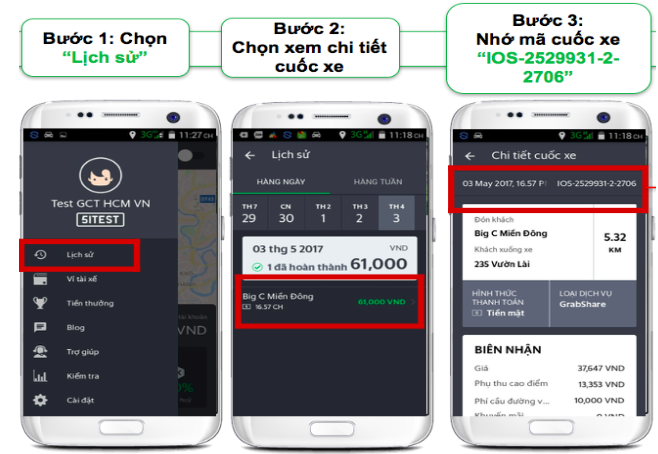 ➢ Thông báo các thông tin liên quan khác: mã chuyến đi, sai điểm đón hay điểm trả khách, địa chỉ chính xác của điểm bị định vị sai…