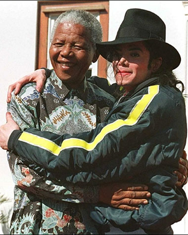 Cựu tổng thống Nam Phi Nelson Mandela trao giải Thành tựu trọn đời cho Michael Jackson vào tháng 4/1999. Ảnh: Prai.