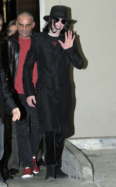 Michael Jackson đeo mặt nạ và mũ khi tới Hollywood vào 22/4/2009. Ảnh: Apega.