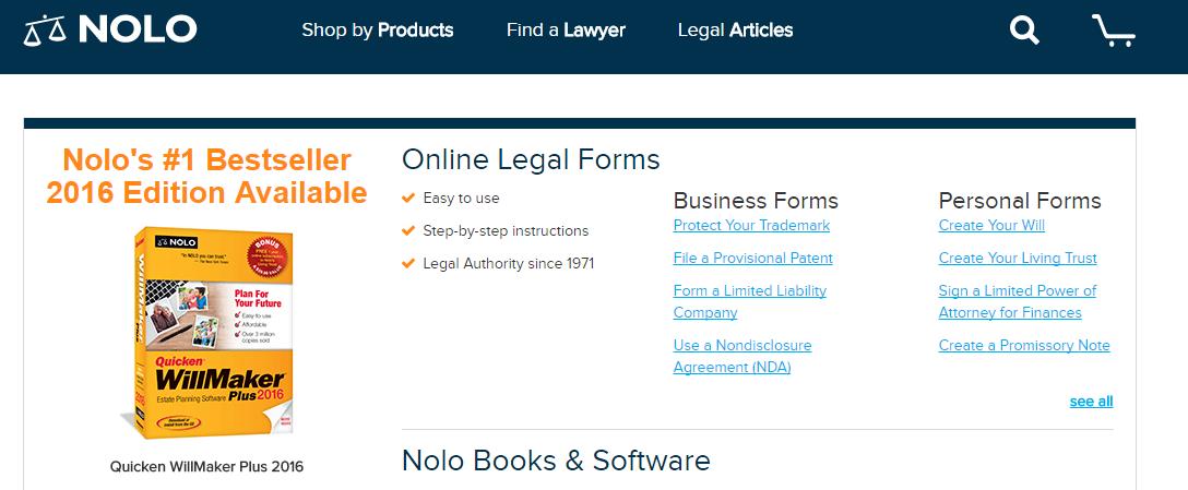 Trang web này cung cấp tư vấn pháp lý cho bất cứ ai có mối quan tâm và lo ngại về pháp lý. Thông qua Nolo, bạn có thể tìm thấy câu trả lời cho bất kỳ câu hỏi về pháp luật nào bạn muốn, nghiên cứu những chủ đề về pháp luật, đọc blog hay FAQs để tìm hiểu thêm. Bạn có thể tìm hiểu tất cả những điều này trước khi có ý định thuê một luật sư.
