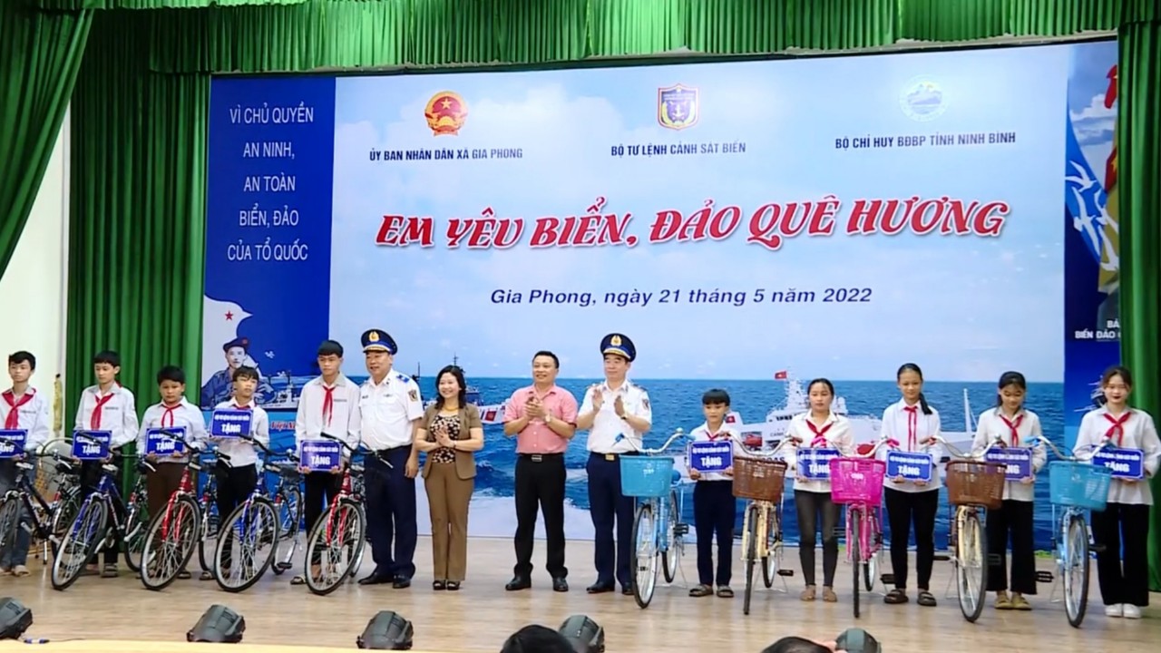 Các em học sinh có hoàn cảnh khó khăn tại xã Gia Phong được tặng xe đạpVới truyền thống “uống nước nhớ nguồn” nhân dịp này, Bộ Tư lệnh Cảnh sát biển Việt Nam đã trao tặng 68 suất quà cho thân nhân gia đình liệt sỹ, thương binh, bệnh binh, người bị nhiễm chất độc da cam, cán bộ tiền khởi nghĩa; cơ sở cách mạng và hộ nghèo trên địa bàn xã (mỗi suất 1 triệu đồng và 1 túi quà trị giá 500.000 đồng). Trao tặng 50 xe đạp cho 50 học sinh có hoàn cảnh khó khăn vươn lên trong học tập của 2 trường Tiểu học và THCS Gia Phong; trao tặng 4 bộ máy vi tính, máy in cho UBND xã và 4 tivi 65 inch cho Trường THPT Gia Viễn C và các trường học trên địa bàn xã; đồng thời trao tặng vật tư y tế và tổ chức tư vấn, khám bệnh, cấp phát thuốc miễn phí cho gia đình chính sách, người có công trên địa bàn xã Gia Phong, huyện Gia Viễn… Qua đó, góp phần tăng cường sự đoàn kết, hiểu biết, gắn bó giữa cán bộ, chiến sĩ Cảnh sát biển Việt Nam với các em học sinh, thầy cô giáo và nhân dân địa phương.